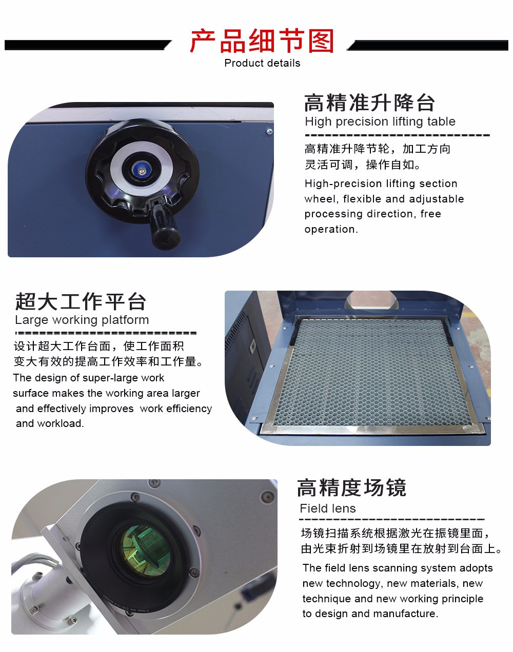 • Features of exhibits: