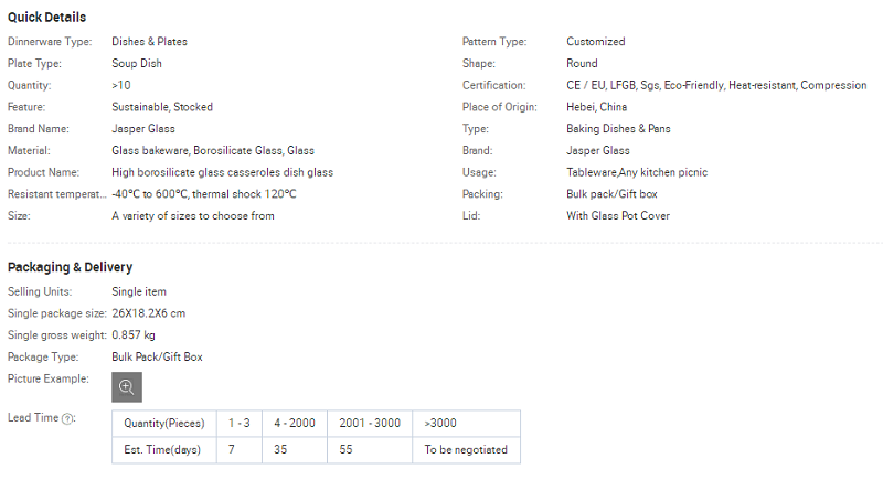 Microwavable high borosilicate glass casserole