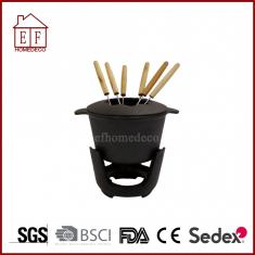 The fondue sets are made from durable cast iron,which warms evenly wearing for long--lasting performance.Include snuffer for lotal flame control.