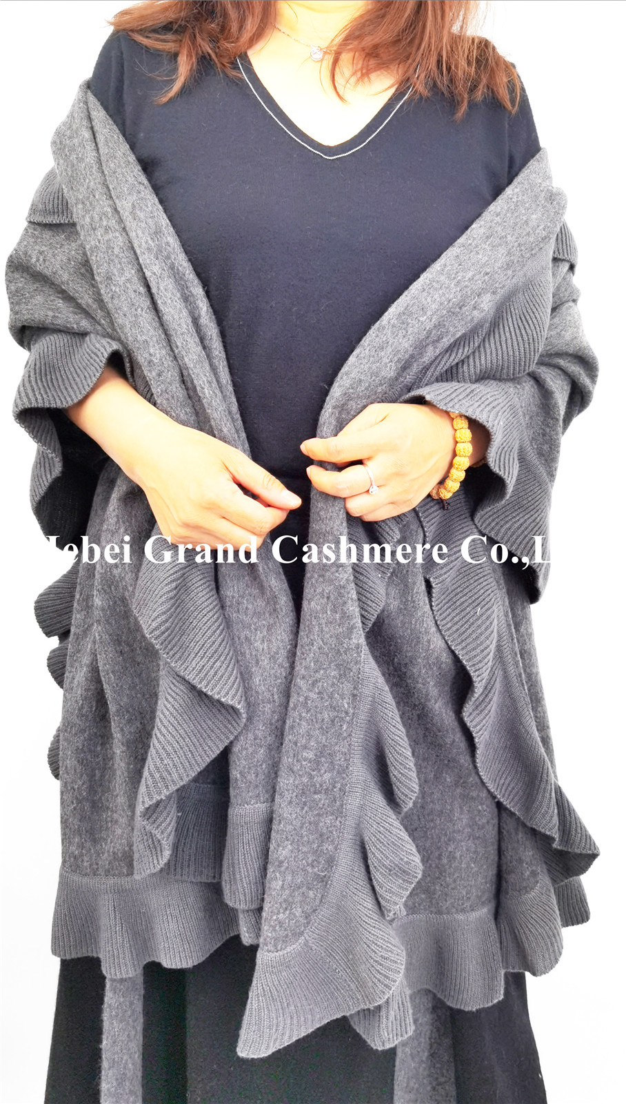 Women's woven shawl with knit ruffle edge
